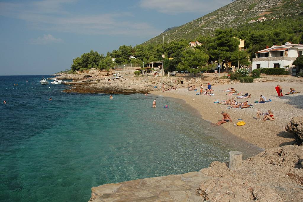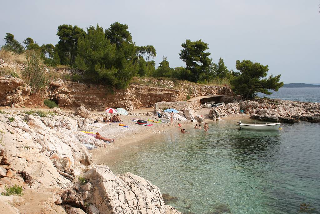 Po pěkném chodníku nad pobřežím se dá dojít k pláži v malé zátoce Paklina (cca 300 metrů).